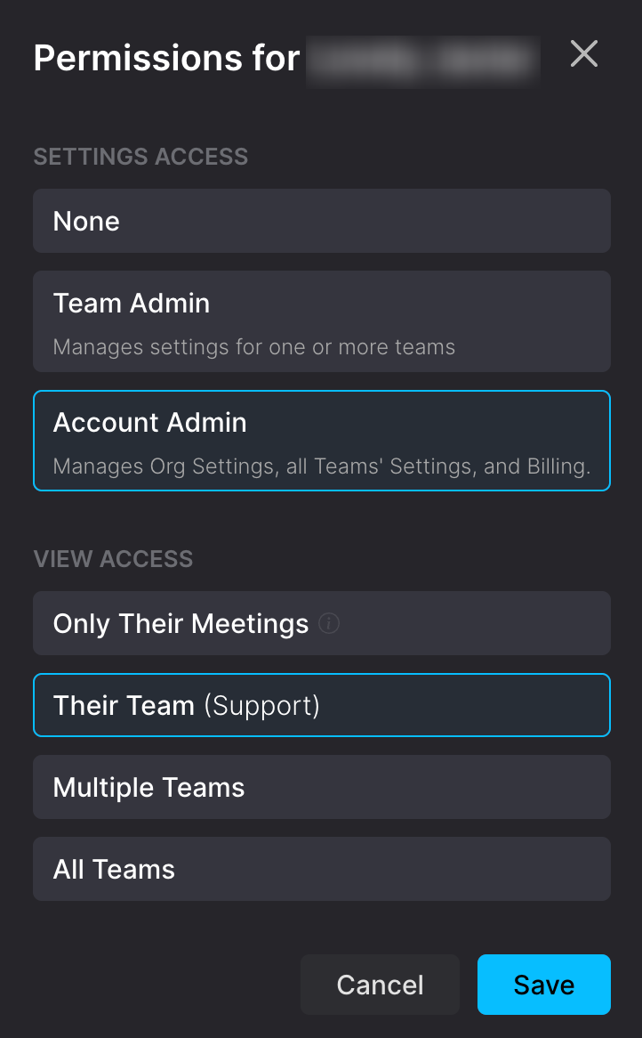 View Access: which teams’ calls and folders someone can see (Only their meetings vs one team vs multiple teams vs all teams).