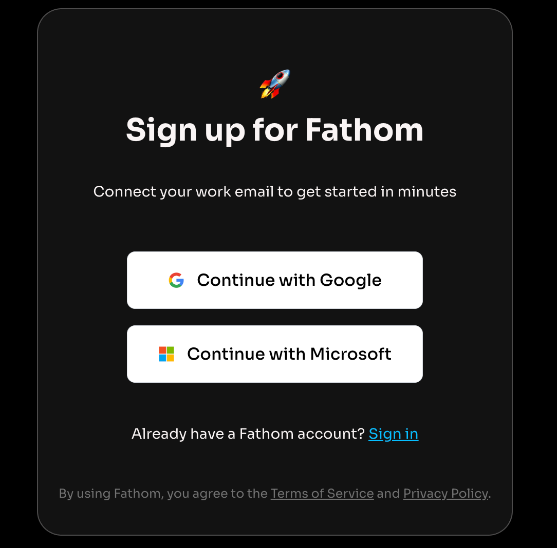 Welcome to Fathom! If you haven’t signed up yet, head over to fathom.ai to create your account - it only takes a minute.