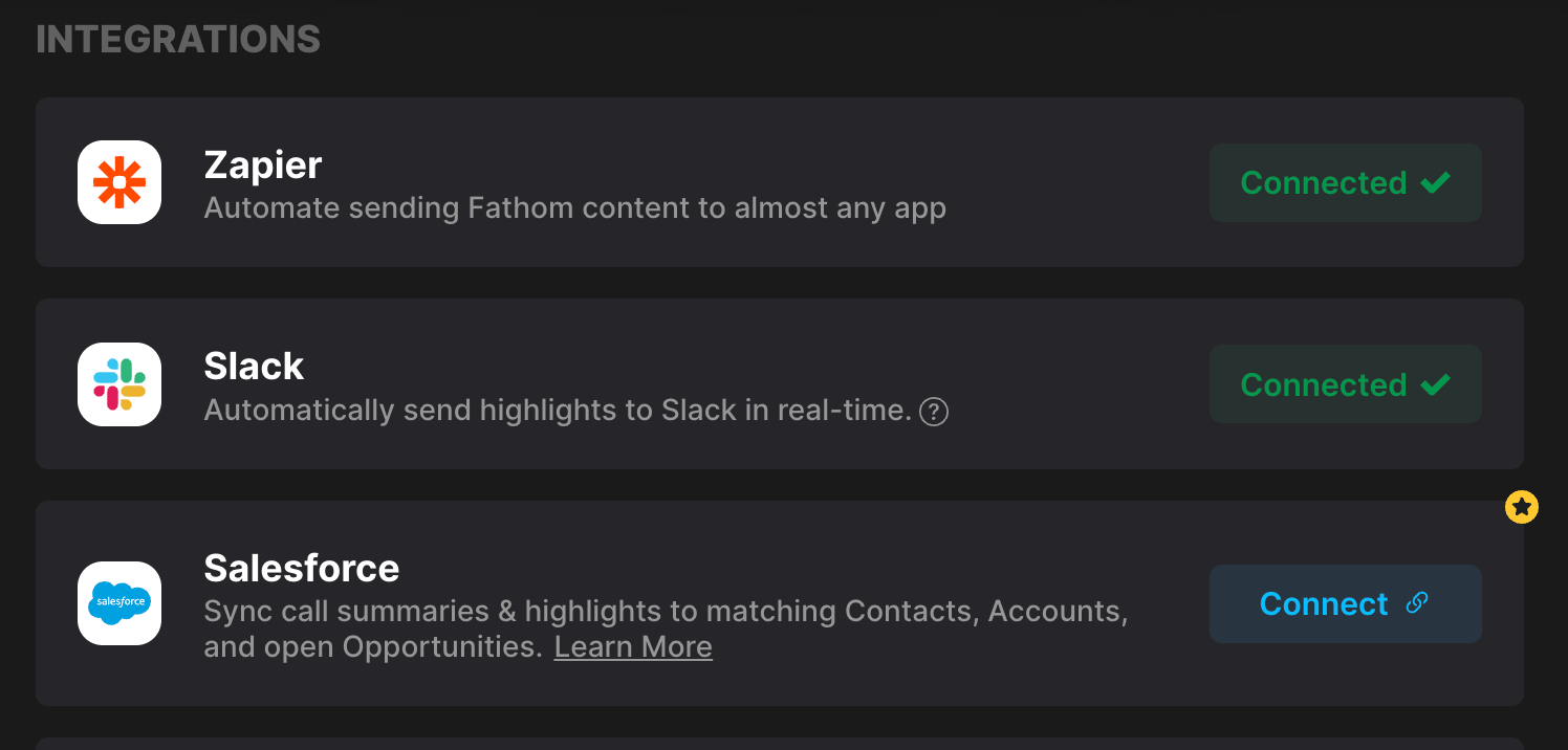 Salesforce must be configured at the team level in Fathom Organization Settings.