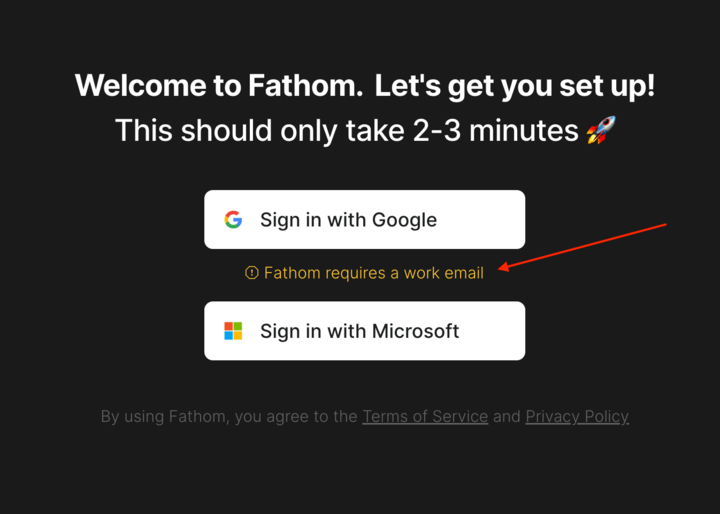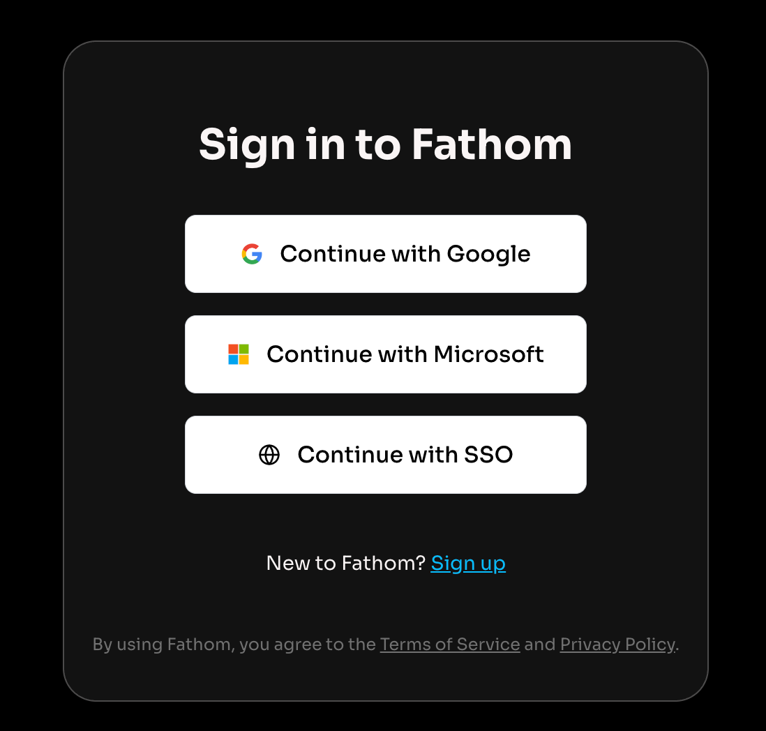 Fathom uses single sign-on (SSO) to make it easy to log in to the app. You can log in with your Google email address or your Microsoft account.