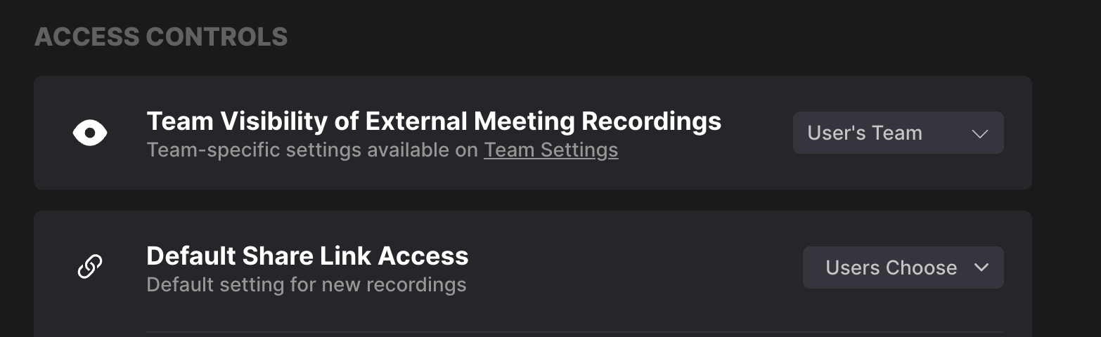 If your Team Admin has enabled “Team Visibility of External Meeting Recordings,” future external meetings you record will be automatically shared with the scope your admin set (e.g., your Team or All Teams).